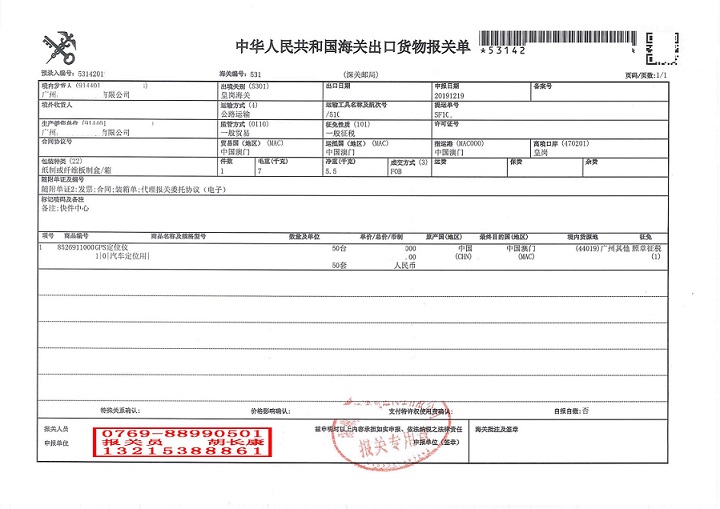 关于汽车定位用GPS定位仪出口澳门皇岗报关的案例就为大家分享到这里,通过以上内容的梳理,相信很多人都能清楚相关报关手续和出口流程.总归一句话:超出你认知格局的货物,其实并没有你想象的那么不可逾越,只要从容去面对,一切都会迎刃而解.